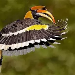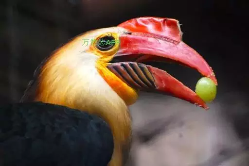 犀鸟 犀鸟吃东西时,往往先用嘴将食物向上抛起,然后在用嘴准确地接住,吞下食物。