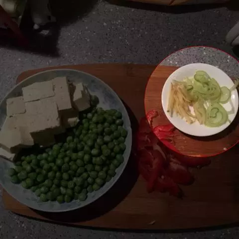 【调料】:料酒(10克) 盐(5克) 味精(2克) 大葱(10克) 姜(10克) 花生油(60克) 淀粉(豌豆)(15克)