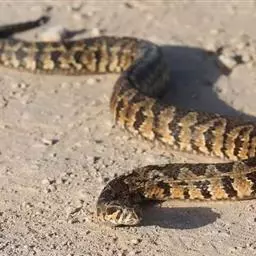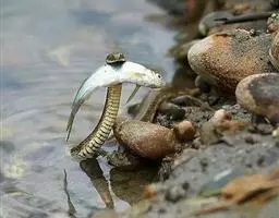 水游蛇(Natrix natrix Linnaeus)是游蛇科,水游蛇属的无毒蛇。蛇体全长最长可达200厘米。头背部橄榄绿色,枕部两侧有一对较大的鲜明橘红色或橘黄色斑;腹面灰白色,几乎每一腹鳞都有1-4个略呈三角形的粗大黑色斑,有的其间还散以黑点。