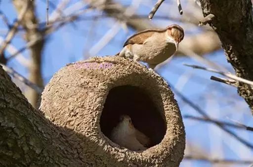 绝大多数鸟类的巢穴都使用嫩枝搭建,四面通风,相比之下,南美洲的棕灶鸟则是一个另类,会在树上建造土窝。它们收集泥土和粪便,在高枝上建造一个碗状巢穴。在阳光的烘烤下,巢穴逐渐变硬,允许棕灶鸟在里面产卵。它们的巢穴建在背风处,防止被大风吹跨,同时也能经受住其他恶劣天气考验,是一个理想的避难所。
