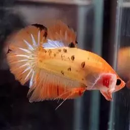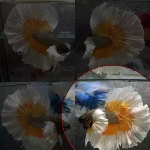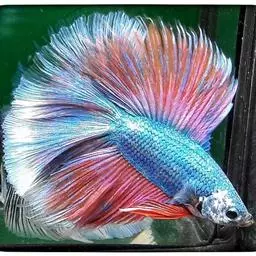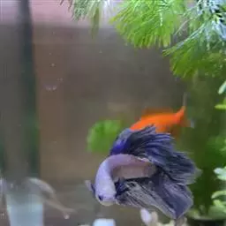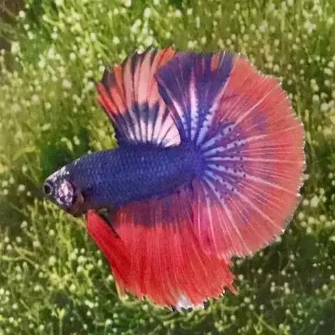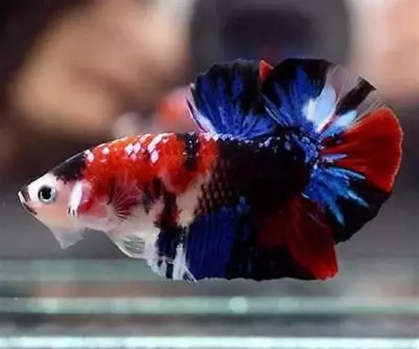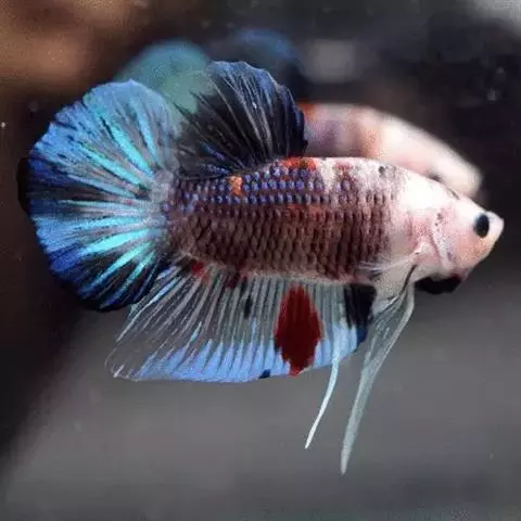 杂合子蓝尾(Heterozygote Blue Tail):俗称“Bb蓝”,子代会分离出杂合子蓝尾(约50%)、蓝化体蓝尾(约25%)、红尾(约25%)三种性状,一般来看杂合子蓝颜色较浅,但要想确知,必须通过测交来确定。致色原因是蓝反射细胞+黑色素细胞