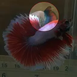 原因:体表的伤口或锚虫,鱼虱等寄生所引起的伤口,由水霉科的真菌着生引发二次病症者。真菌大都是输入孔雀鱼带进来的居多。