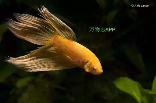 体黄褐色,具有金色光泽,但体色的变异很大,常具有鲜丽的橘黄色或蓝青色斑纹。成长后雌鱼的体色较单调而半透明,如同大肚鱼一般。较雄鱼体色逊色得多,多为单一银灰色,尾鳍上虽有一些花纹,均没有雄鱼的鲜艳。