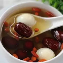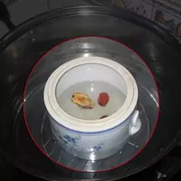 2.起油锅,放入干虾米,小火炒出香味出后,倒入干贝继续炒片刻, 加开水和枸杞煮4 分钟,再加盐、海鲜酱油、白胡椒粉搅匀。