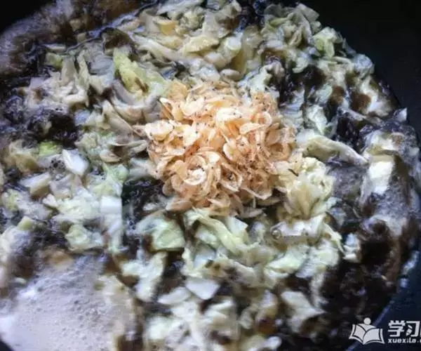 糯米淘洗干净后,浸泡一晚上后,控干水分,上笼蒸约40分钟;紫菜和虾米泡软,并将紫菜切成细末。