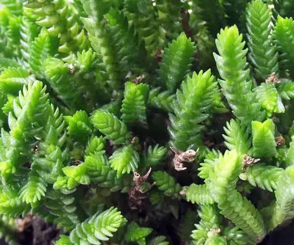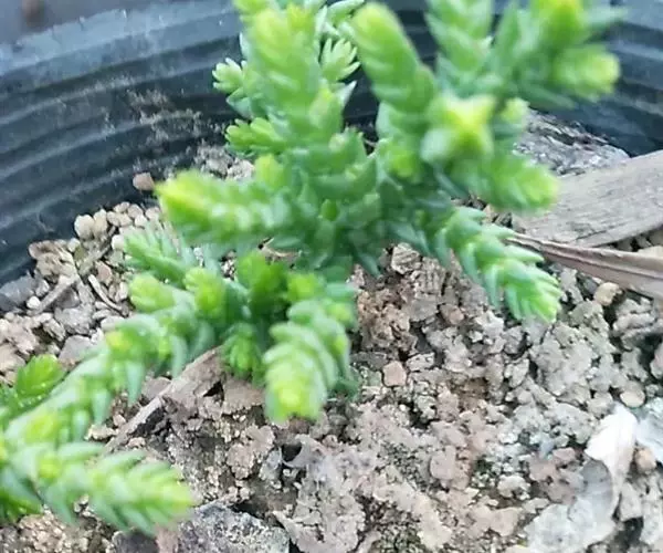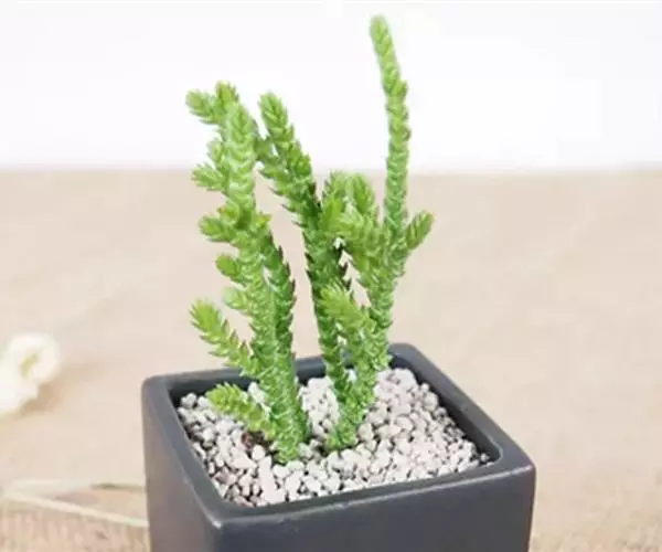 若绿叶片很小,且大部分时间会呈现绿色,只有日照充足时顶部的叶片才会变红。和青锁龙比较像,叶片没有那么紧密。若绿是青锁龙的变种,若绿与青锁龙相比,若绿的分枝除了有垂直向上的外还有横斜匍匐的,叶排列散乱,有时4棱有时不呈4棱。 若绿