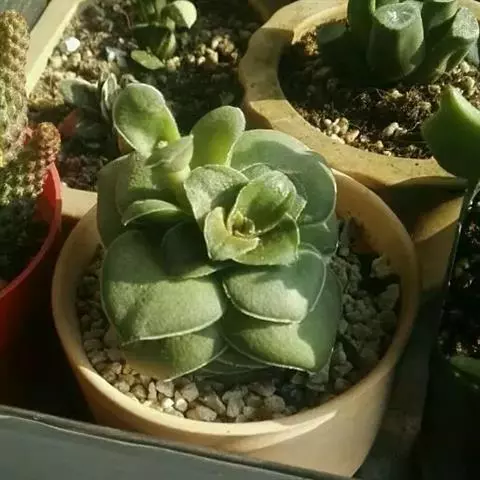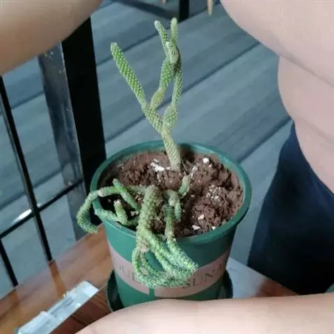 若绿养在全日照的阳光房里,生长期需保持土壤湿润,避免积水。土壤用了煤渣混合泥炭、少量珍珠岩,比例大概5:4:1。若绿能耐零下2℃左右的低温,是室内的温度,非露天,再低叶片的顶端生长点就会出现冻伤,干枯死亡,来年会在枯萎处重新萌发新侧枝。