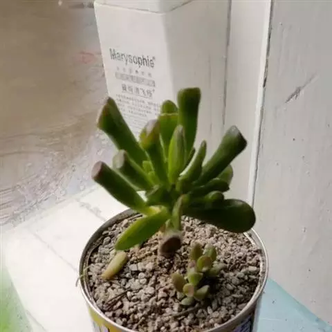 若绿繁殖一般就是砍头,取健康有生长点的枝条,按照3至5厘米高左右一段剪下,晾干伤口扦插,也可以直接扦插在干的颗粒土中,几天后少量给水,若绿是非常好繁殖的一个品种,叶片和叶片间也容易长出很多小根。碰到合适的土壤就会把根牢牢扎在土里。