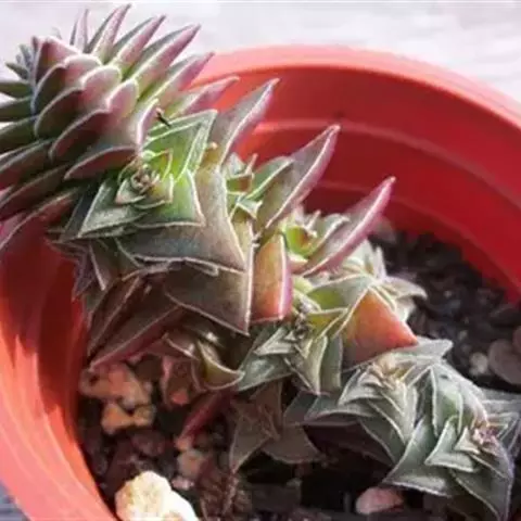原产于非洲纳米比亚,生长速度快,适应性强,也耐半阴,但不喜水,种植时注意少浇水。在世界各地广泛栽培。是一种非常迷你的青锁龙属多肉植物,具有生长速度快,适应性强,容易繁殖的特点。日照充分时顶部的叶片会略微变红,其他时候都是绿色。非常容易繁殖,很快就能从一点张成一大丛。非常适合放在组合中种植,因为生长速度快,很快就会遮盖住空白的地方!单独栽种效果略逊于组合,因为色调很单调,选择好花器的话搭配起来就会很美观!