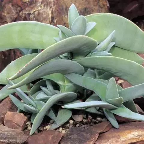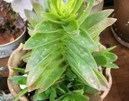 从外文的文献上看,它不会向吊兰一样垂下来。它是一种多肉植物,高15-30 cm。叶色绿或蓝绿。花期从夏末至初冬,黄或白色。栽培土PH值5.1-6.0(强酸至酸性)。