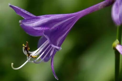 花葶高33-60厘米,具几朵至十几朵花;苞片近宽披针形,长7-10毫米,膜质;花单生,长约4厘米,盛开时从花被管向上逐渐扩大,紫色;雄蕊稍伸出于花被管之外,完全离生。花期8-9月。