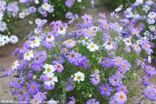 五色菊,株高20~45厘米,花径4厘米,花色丰富,适生于干燥向阳环境。原产于澳大利亚。