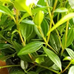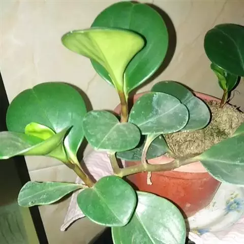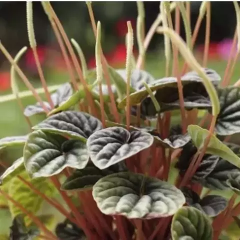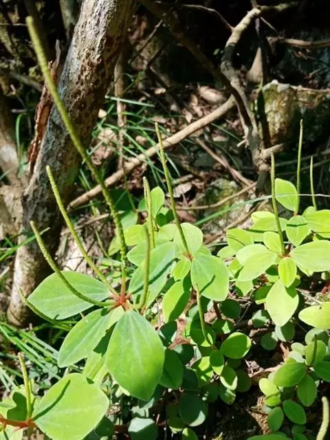 圆叶椒草直立性植株,高约30 cm。单叶互生,叶椭圆形或倒卵形。叶端钝圆,叶基渐狭至楔形。叶面光滑…