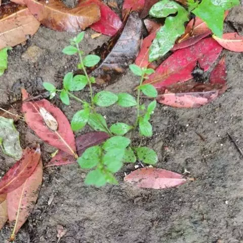 一年生蔓性草本。茎淡褐色,长达80厘米,中空,具4-6纵棱,沿棱具弯曲的短刚毛,自下部分枝。茎下部叶具柄,矩圆形,长4-7厘米,宽0.5-1.5厘米,先端微尖或钝,基部渐狭下延,两面被硬毛,茎中部以上叶较小,狭矩圆形,长0.7-2.5厘米,宽3-7毫米,先端尖,深5裂,基部楔形,两面被短刚毛,近对生;无柄。花小,单生叶腋,具短梗;花萼长约1.5毫米,深5裂,裂片条状披针形,略等大,果期2裂片增大,长达1厘米,掌状分裂,具不规则大芽齿状裂片,裂片长2-4毫米,具明显脉纹,被伏细刚毛;花冠紫色,裂片5,钝圆,长约0.8 毫米,筒长约1毫米,喉部具5半圆形的凸起体。小坚果4,具小瘤状突起,长卵形,长3.5毫米,宽2毫米,生于圆锥状雌蕊基上,着生面于果之中上部。花期5月,果期8月。2n=48。