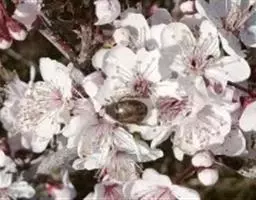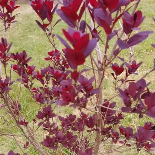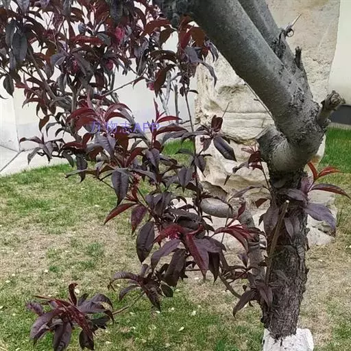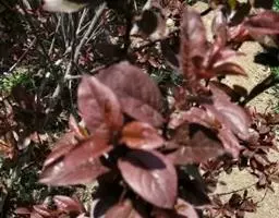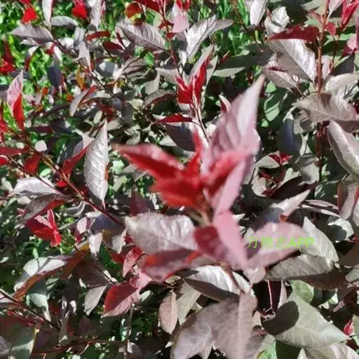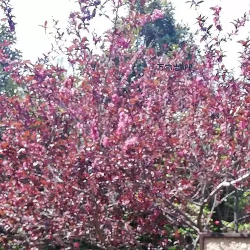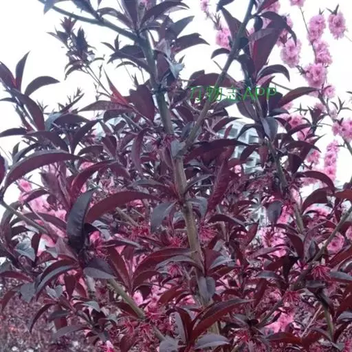 紫叶矮樱 紫叶矮樱为落叶灌木或小乔木,高达2.5米左右,冠幅1.5米至2.8米。枝条幼时紫褐色,通常无毛,老枝有皮孔,分布整个枝条。