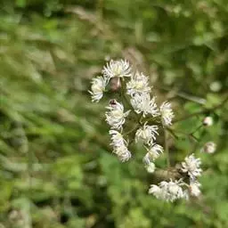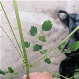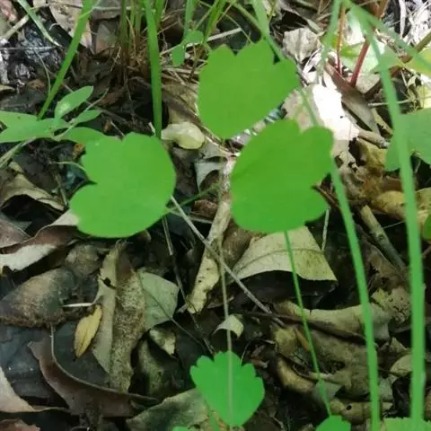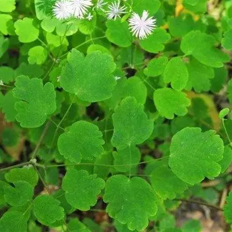 展枝唐松草 多年生草本植物。 植株全部无毛。根状茎细长,自节生出长须根。茎高60-100厘米,有细纵槽,通常自中部近二歧状分枝。基生叶在开花时枯萎。茎下部及中部叶有短柄,为二至三回羽状复叶;叶片长8-18厘米;小叶坚纸质或薄革质,顶生小叶楔状倒卵形、宽倒卵形、长圆形或圆卵形,长0.8-2(-3.5)厘米,宽0.6-1.5(-2.6)厘米,顶端急尖,基部楔形至圆形,通常三浅裂,裂片全缘或有2-3个小齿,表面脉常稍下陷,背面有白粉,脉平或稍隆起,脉网稍明显;叶柄长1-4厘米。