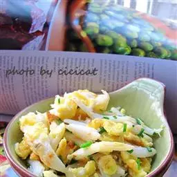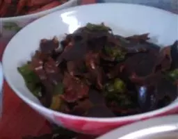 2、用沸水软化后同肉沫炒食。