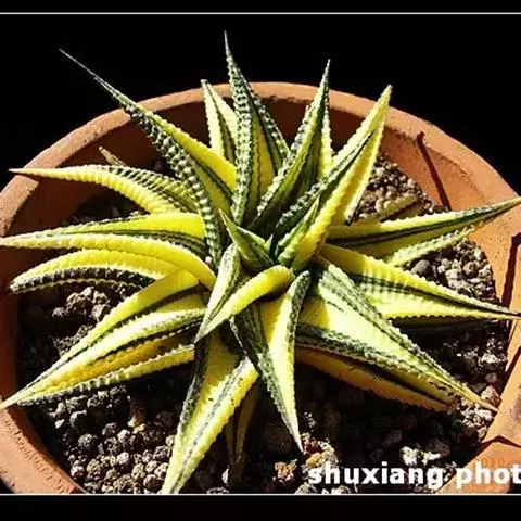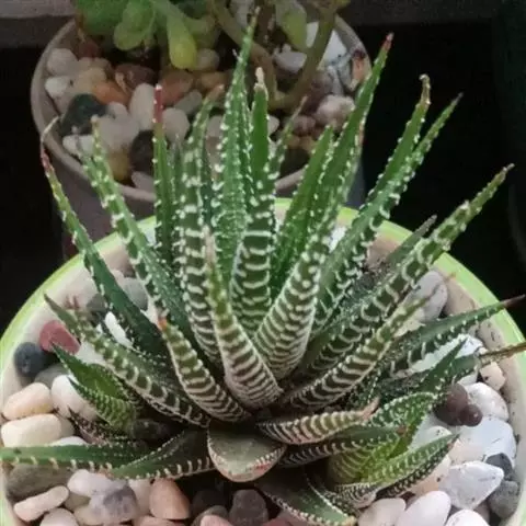 矮苇锦(拉丁学名Haworthia variegata var. modesta),百合科十二卷属/瓦苇属多肉植物。