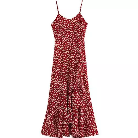 印花吊带裙