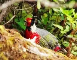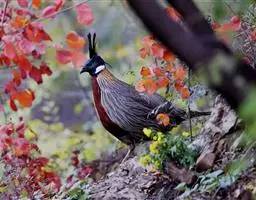 血雉雉科血雉属鸟类,别名血鸡、松花鸡,血雉的雄鸟大覆羽、尾下覆羽、尾上覆羽、脚、头侧、腊膜为红色,…