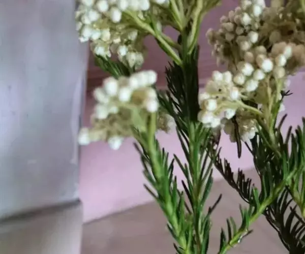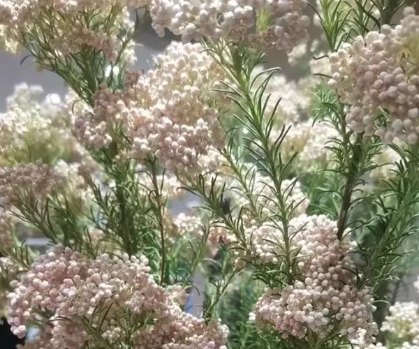 常绿灌木,株高可达2米,叶小,线形,互生。小花簇生于末端分支上,通常白色,也有粉红色。