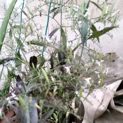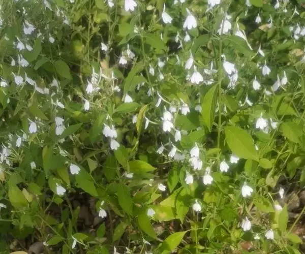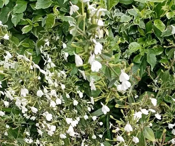 圆锥花序由小聚伞花序组成,顶生或有时腋生;花序轴通常2或3回分枝,通常3出,密被短柔毛;苞片和小苞片长约1毫米;花萼内外均被茸毛,裂片长约2毫米;花冠白色,长2.5厘米或过之,被柔毛,上唇线状披针形,比下唇短,顶端常下弯,下唇3深裂至中部,冠檐裂片倒卵形,近等大。
