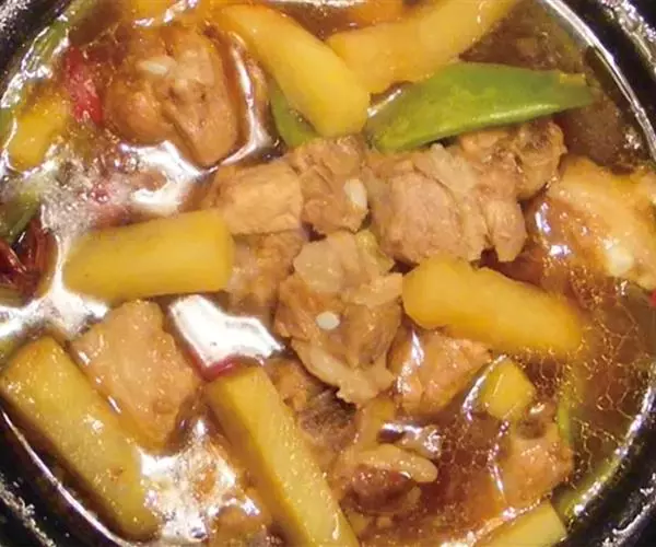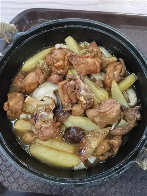 3、收汁一般采用砂锅收汁,其目的是能够长时间保留黄焖鸡的原香味。收汁时加上适当的时令蔬菜,让黄焖鸡兼顾肉、汤、菜齐全,色、香、味丰富。