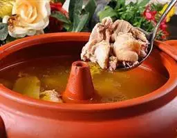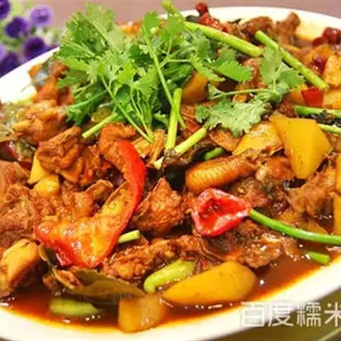黄焖鸡米饭又叫香鸡煲、浓汁鸡煲饭,起源于济南名店“吉玲园”,是山东济南特色传统名菜之一。1927年,济南府鲁菜名店"吉玲园"由于名厨云集,佳肴迭出而红极一时,名商富贾、达官显贵纷至沓来,与当时的"汇泉楼"、“聚丰德"并称省城三大名店,其招牌菜"百草黄焖鸡”更是深受时任山东省主席韩复榘的喜爱,他曾为此赏银三十块,并称赞“此鸡匠心独运,是上品之上,当为一绝”。属于鲁菜系家常菜品,主要食材是鸡腿肉,配以青椒、香菇等焖制而成,味道美妙,具有肉质鲜美嫩滑的特点。其中以黄焖鸡米饭和八珍黄焖鸡最为出色,入口爽滑弹牙,汤汁鲜美。
