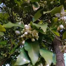 柚子树又名“文旦”“栾”“抛”。芸香科。常绿乔木。叶大而厚;叶翼大,呈心脏形。花大,常簇生成总状花…