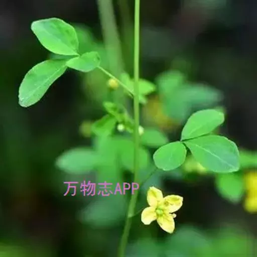 多年宿根草本植物,植株高30-80厘米。根纤细。叶有柑橘叶香气,叶柄长8-15毫米;小叶椭圆形或倒卵状椭圆形,中间1片最大,长很少达3厘米,宽不到1厘米,两侧2片甚小,长4-10毫米,宽2-6毫米,顶端钝或圆,微凹缺,下部狭至楔尖,边缘有不规则亦不明显的钝裂齿,无毛,背面灰绿色。