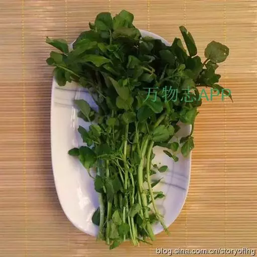 豆瓣菜 豆瓣菜的食用部分为植物的嫩茎叶,其性味甘凉,具有清肺热、润肺燥的功效。营养成分因产地不同而有所区别,一般每100g嫩茎叶中含水分93-97g、蛋白质0.9g、纤维1-3g、钙43-121mg、磷17mg、铁0.6-1mg、铅0.7mg、锌0.12mg、镁11.45mg、钾307.8mg、胡萝卜素0.62-4.67mg、维生素B20.17mg、维生素C79-124mg。据分析研究,豆瓣菜含有较多的蛋白质、维生素A、维生素C及少量的维生素D,大量的铁、钙等元素。有较高抗衰老素――过氧化物歧化酶。