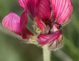多花组成紧密或较疏松的总状花序;总花梗与叶近等长或长于叶,疏被长柔毛;苞片披针形,长8-15毫米,被长柔毛;花长20-25毫米;花梗极短或近无梗;花萼筒状,长11毫米,被长柔毛,萼齿披针形,长约4毫米,两面被长柔毛;花冠淡红紫色,旗瓣长椭圆形,长18.5毫米,宽6.5毫米,先端圆形或微凹,基部下延成瓣柄,冀瓣长15毫米,先端急尖,耳长2毫米,瓣柄长8毫米,龙骨瓣长12毫米,喙长2毫米,耳长约15.2毫米;子房线形,被毛,花柱无毛,无柄。