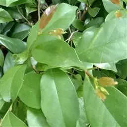 常绿乔木高14米;嫩枝被鳞垢;老枝暗褐色,秃净无毛;顶芽裸露。叶革质,长卵形或披针形,长5-12厘米,宽2.5-4厘米,先端渐尖,基部楔形或钝;上面深绿色,发亮,秃净无毛,下面橄榄绿色,略有稀疏星状柔毛,通常嫩叶两面有星状柔毛、兼有鳞垢,老叶秃净无毛;侧脉6-7对,在上面干后轻微下陷,在下面不显著;全缘或中部以上有几个小锯齿;叶柄长8-18毫米,被鳞垢。