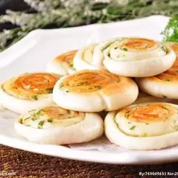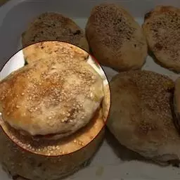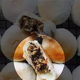 烤箱开375F,把烤盘底部和四周喷油,一份面皮包一份肉馅,收口朝下,放入烤盘。烤盘入烤箱烤30分钟,取出摊凉。