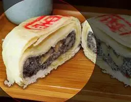 江浙沪一带的传统特色小吃。苏式月饼的一种,中秋节节令食品。顾名思义,馅完全是由一大团鲜肉(猪肉)组成,皮脆而粉,又潜伏着几分韧,丰腴的肉汁慢慢渗透其间,可谓一绝。