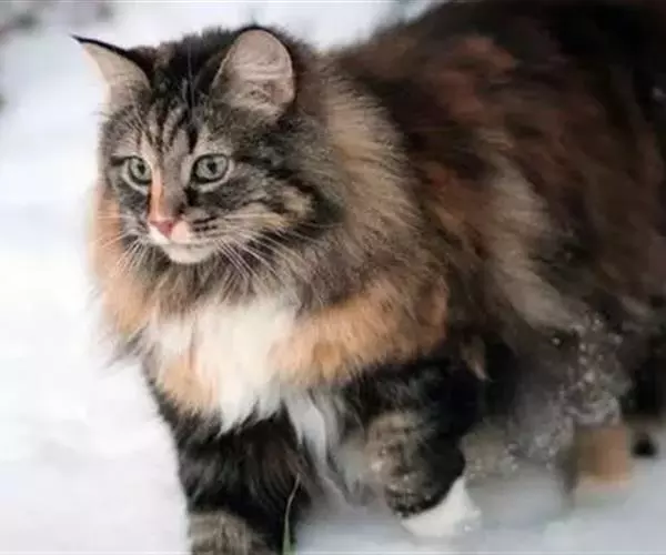 其起源可追溯到古代时期,是13世纪的海盗为了消灭侵扰他们船只的老鼠从小亚细亚(CAUCUS,ANATOLY等)带回的猫繁衍而成。还有一种可能性是由中世纪前迁移到斯堪地那维亚的中欧或亚洲的部落所带来。其它地区迁入的猫当时可能只有适应斯堪地那维亚当地严寒的气候,从而进化出了厚实,双层保温,能对抗严寒气候的被毛。这些猫的体重和体型也已经有所增加。