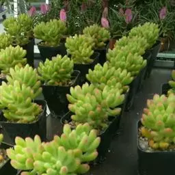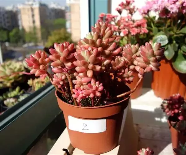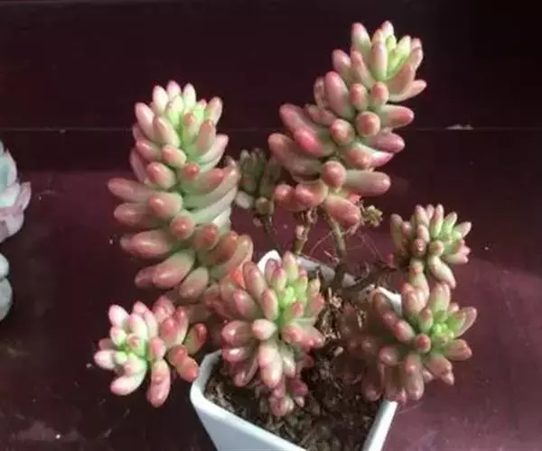 用扦插繁殖。于生长季节从健壮的植株上切取叶片.放阴凉的环境中晾几天,待稍干后即入盆沙中,少量浇水,保持盆沙潮润,极易生根成活。当根长达到2-3厘米时,即可移入小盆中培养。枝插或叶插均可,以叶插为好。每月浇2次水,喜光,盛水的托盘请务必扔掉。它的可爱叶子,冬天的时候会悄悄变成粉红色。不怕冷,由于叶子含充足水分,因此易于种植。 只要注意不要长期浇太多水,非常好养。如果放到强烈的太阳下,包括在盛夏,都不会有什么问题,而且接受强光照射还能让它们长得更加粉嫩可爱(在强烈光线下也会透出粉色,非常漂亮)。但它们都有很强的趋光性,如果光线不均匀,他们会朝一边长,株型就不好看了。所以如果是在阳台养,最好是经常转转盆。