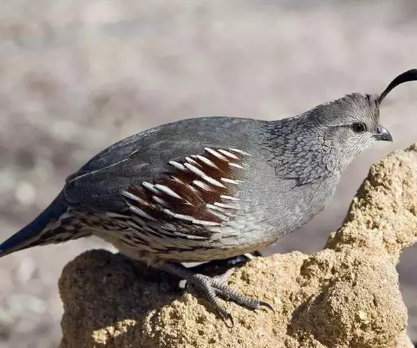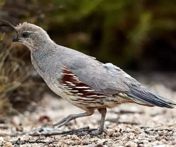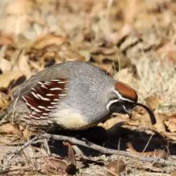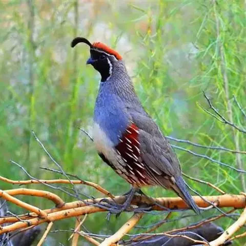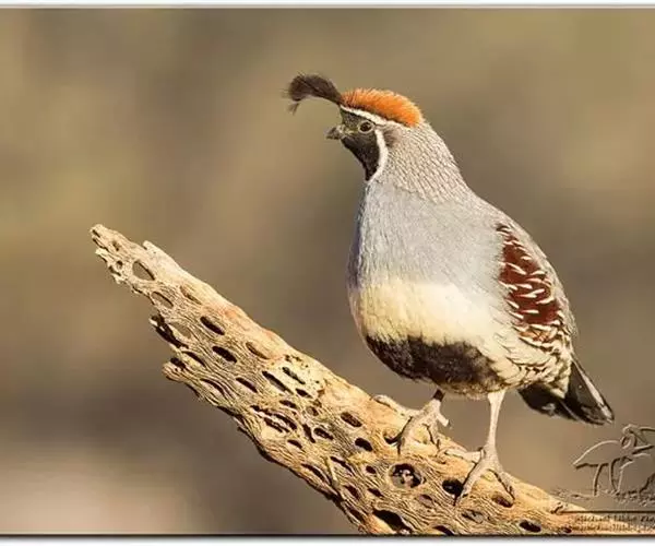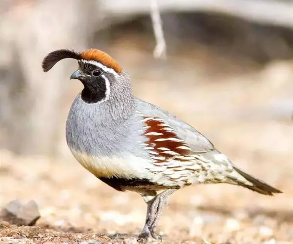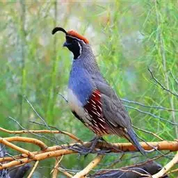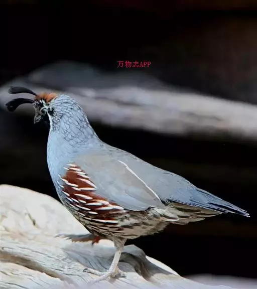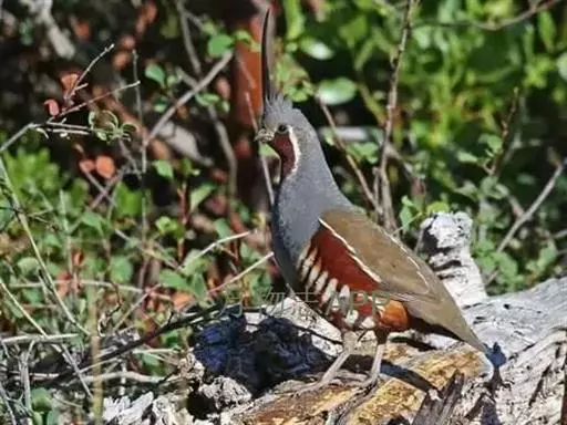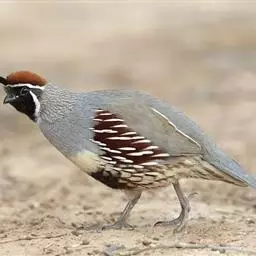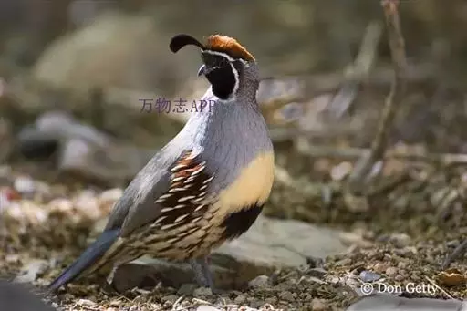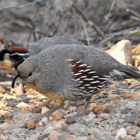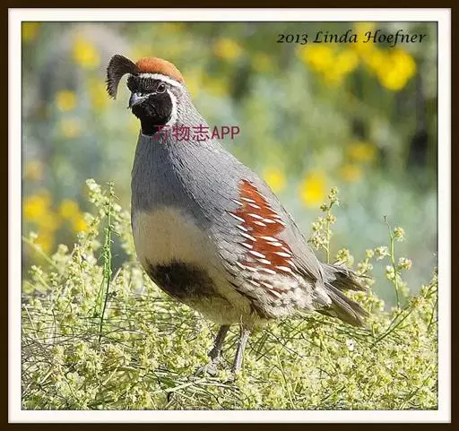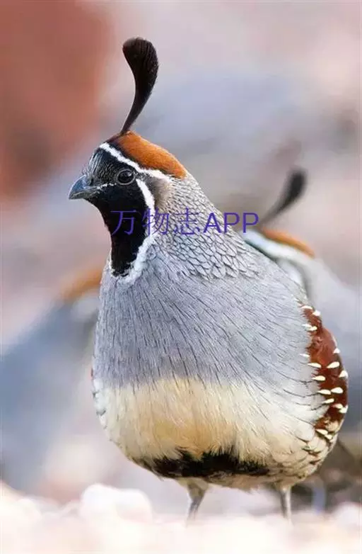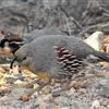 黑腹翎鹑(学名:Callipepla gambelii)属鸡形目齿鹑科,有7个亚种,分布区域不同个体略有差异。羽色绚丽、形态健美,雄鸟比雌鸟美丽。最显著的特点是额头上有一个黑色的弯曲冠羽,与珠颈翎鹑相似。主要的食物是种子、浆果,有时也吃一些树叶、草根和昆虫。觅食是多用脚趾挖后用喙取食。一般以2名成鸟和可变数量的亚成鸟组成小群,多达16只,有其特定的领活动区域。