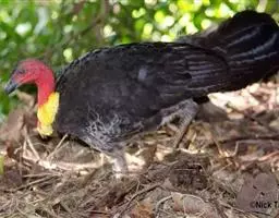 主要的食物是种子、浆果,有时也吃一些树叶、草根和昆虫。觅食是多用脚趾挖后用喙取食。一般以2名成鸟和可变数量的亚成鸟组成小群,多达16只,有其特定的领活动区域。