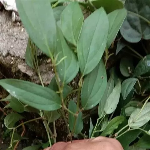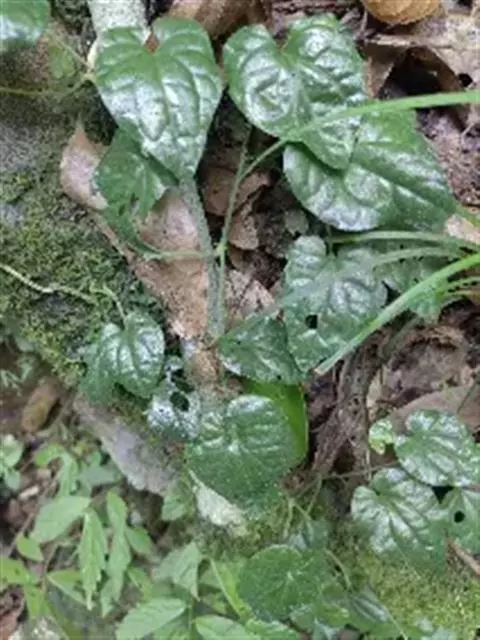 假蒟是胡椒科胡椒属多年生草本植物。小枝近直立,无毛或幼时被极细的粉状短柔毛;叶近膜质,有细腺点,…