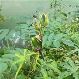 刺蒴麻,为半灌木,高约1米,全株稍被毛,茎或分枝,下部的叶菱状宽卵形或宽卵形。