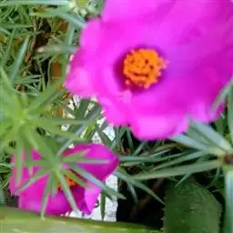 大花马齿苋:一年生草本,高10-30厘米。茎平卧或斜升,紫红色,多分枝,节上丛生毛。叶密集枝端,…