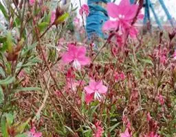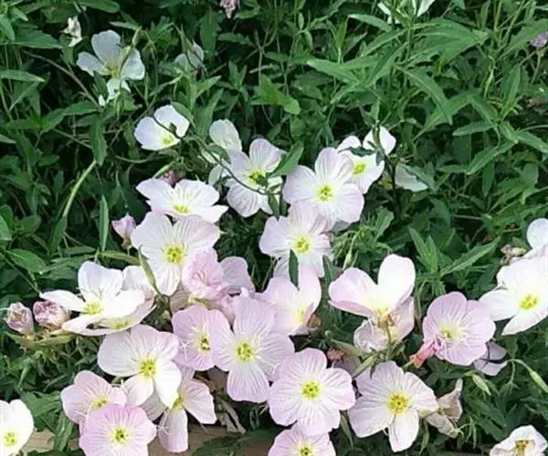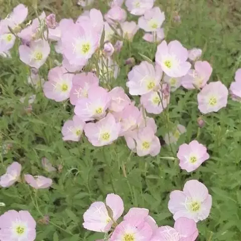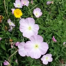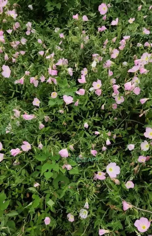 美丽月见草,别名:待霄草、粉晚樱草、粉花月见草,拉丁文名:Oenothera speciosa,英文名:evening primrose(晚樱草),是月见草的一种,柳叶菜科、月见草属多年生草本,具粗大主根(粗达1.5厘米);茎常丛生,因它在傍晚见月开花,且天亮即调谢,故名月见草,但美丽月见草白天也会开放,花朵如杯盏状,引来粉蝶翩翩飞舞,甚为美丽。丛生状种植,营造出别样的自然园林风情。