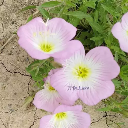 根圆柱状,茎直立,幼苗期呈莲座状,基部有红色长毛,叶互生,茎下部分有柄,上部的叶无柄;叶片长圆状或披针形,边缘有疏细锯齿,两面被白色柔毛。花单生于枝端叶腋,排成疏穗状,萼管细长。花白至粉红色,花径达8厘米以上,5至10月花开不断。高度范围:50-80厘米,美丽月见草(Oenothera speciosa)为低矮的地被植物,生长强健、非常耐旱,适应范围广。花期4-10月份,花为靓丽的粉红色,花径大,花量多。具有非常强的自播繁衍能力。可以大面积的景观布置,也可以作为花坛花栽培。既可以直接露地播种栽培,也可以作为地被植物被苗圃单位生产销售。可以春、夏、秋播种。也可以冬季保护地播种移栽。每天傍晚开放至次日近午凋萎。不耐严寒,江南可露地避风越冬。繁殖可秋播。生长习性:喜光,耐寒,忌积水。