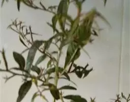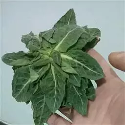 叶柄淡紫红色,长0.5-1.5厘米,开花时基生叶枯萎。茎生叶灰绿色,披针形(轮廓)或长圆状卵形,长3-6厘米,宽1-2.2厘米,先端下部的钝状锐尖,中上部的锐尖至渐尖,基部宽楔形并骤缩下延至柄,边缘具齿突,基部细羽状裂,侧脉6-8对,两面被曲柔毛;