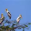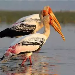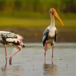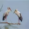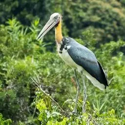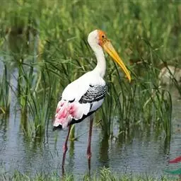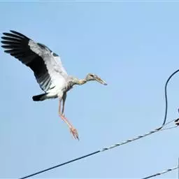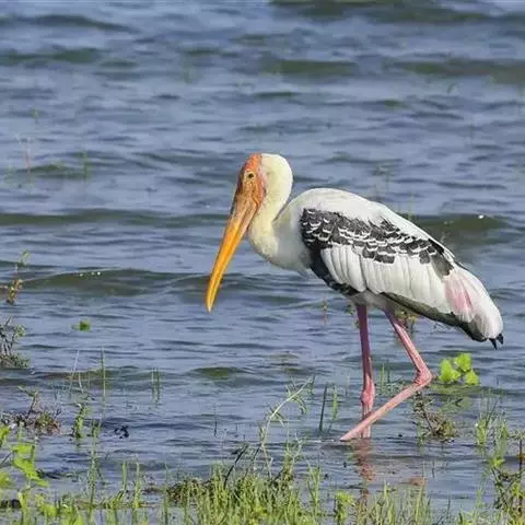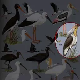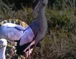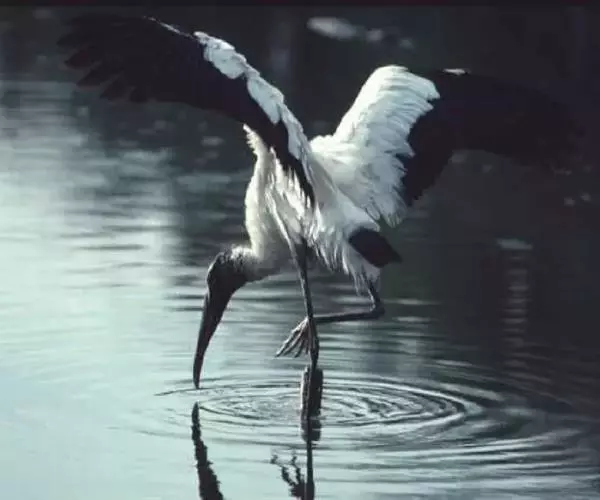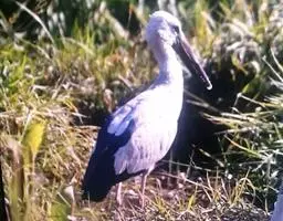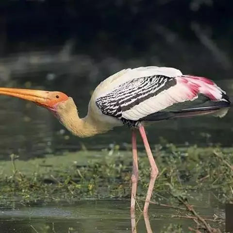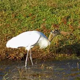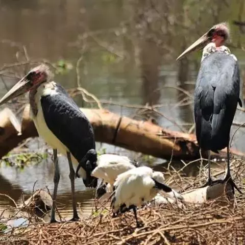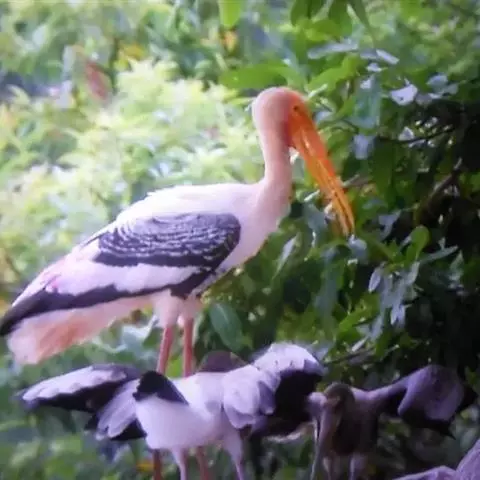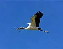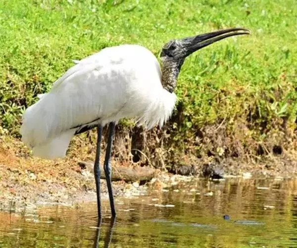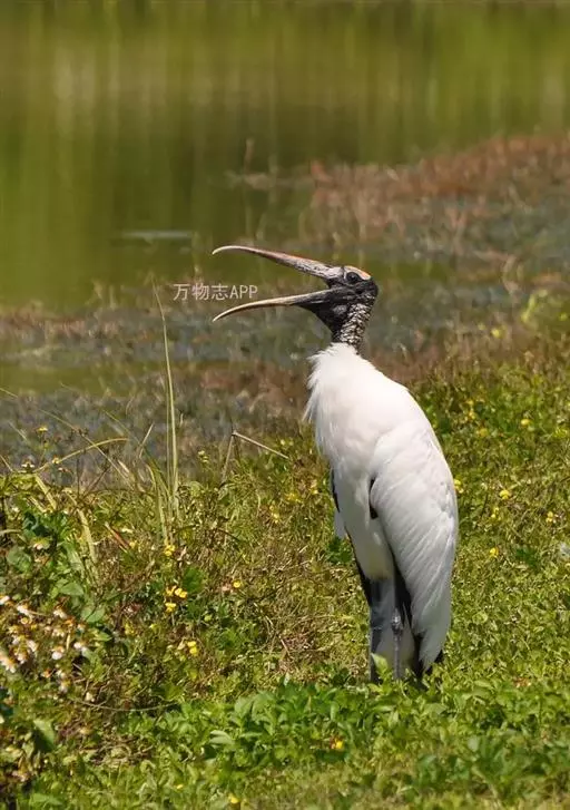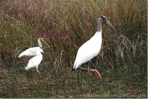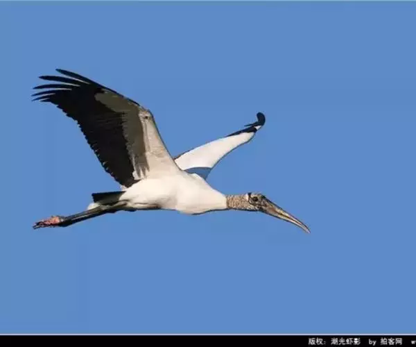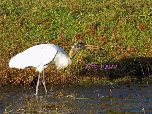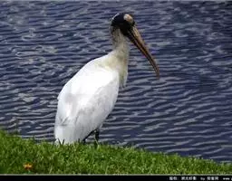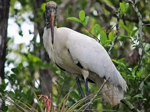 黑头鹮鹳(学名:Mycteria americana):大型涉禽。体长102厘米,翼展150-175厘米,体重2050-2640克。寿命10年。 嘴长而粗壮,飞时头颈伸直。雌雄相似。成鸟上体白色,下体白色。翼下覆羽有黑色横带,具绿色光泽和白色羽缘。虹膜淡黄色;嘴橙黄色;基部红色;脚灰黑色,趾粉红色。