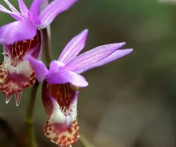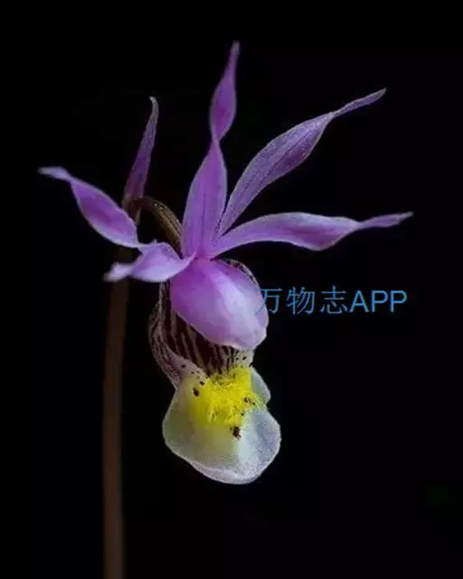 布袋兰(学名:Calypso bulbosa (L.) Oakes):假鳞茎近椭圆形、狭长圆形或近圆筒状,有节,常有细长的根状茎。叶1枚,卵形或卵状椭圆形。花葶长10-12厘米,明显长于叶,中下部有2-3枚筒状鞘;花单朵,直径3-4厘米;萼片与花瓣相似,向后伸展,线状披针形;唇瓣扁囊状(上下压扁),3裂。花期4-6月。