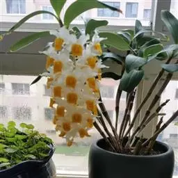 球花石斛,是兰科石斛属的多年生附生草本。茎直立或斜立,圆柱形,粗壮,基部收狭为细圆柱形,不分枝,…