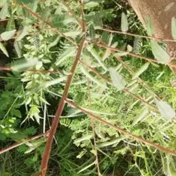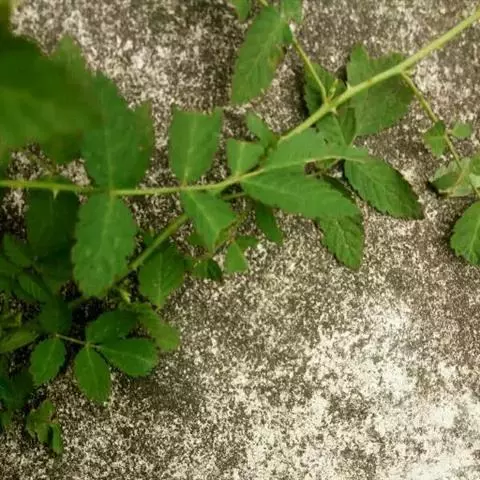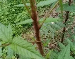 小叶常3枚,稀于不孕枝上具5小叶,长4-10厘米,宽2.5-5(7)厘米,顶端急尖至短渐尖, 顶生小叶卵形或近圆形,稀卵状披针形,基部圆形至浅心形,边缘常3裂或缺刻状浅裂,侧 生小叶斜卵状披针形或斜椭圆形,基部楔形至圆形,上面疏生平贴柔毛或几无毛,下面密 被灰白色绒毛,沿叶脉混生柔毛,边缘有不整齐粗锯齿或缺刻状粗重锯齿;叶柄长2-4厘 米,顶生小叶柄长1-2厘米,侧生小叶近无柄,与叶轴均密被绒毛状柔毛;托叶线形,被柔毛。