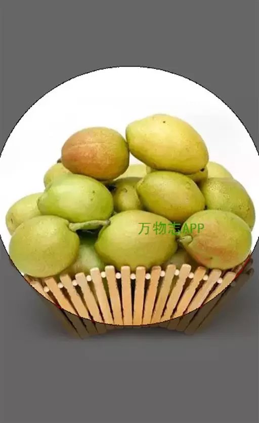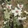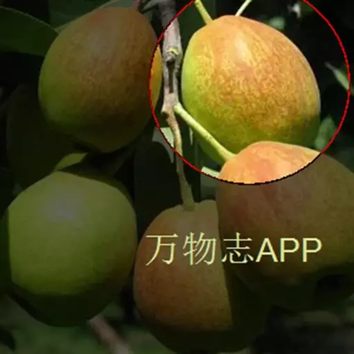 新疆梨 乔木,高达6-9米,树冠半圆形,枝条密集开展;小枝圆柱形,微带稜条,无毛,紫褐色或灰褐色,具白色皮孔;冬芽卵形,先端急尖,鳞片边缘具白色柔毛。叶片卵形、椭圆形至宽卵形,长6-8厘米,宽3.5-5厘米,先端短渐尖头,基部圆形,稀宽楔形,边缘上半部有细锐锯齿,下半部或基部锯齿浅或近于全缘,两面无毛,或在幼嫩时具白色绒毛;叶柄长3-5厘米,幼时具白色绒毛,不久脱落;托叶膜质,线状披针形,长8-10毫米,先端渐尖,边缘具有稀疏腺齿,被白色长绒毛,早期脱落。伞形总状花序,有花4-7朵,花梗长1.5-4厘米,总花梗和花梗均被绒毛,以后脱落无毛;苞片膜质,线状披针形,长1-1.3厘米,先端渐尖,边缘有疏生腺齿和褐色长绒毛,早落;花直径1.5-2.5厘米;萼筒外面无毛;萼片三角卵形,先端渐尖,约长于萼筒之半,边缘有腺齿,长6-7毫米,内面密被褐色绒毛;花瓣倒卵形,长1.2-1.5厘米,宽0.8-1厘米,先端啮蚀状,基部具爪;雄蕊20,花丝长不及花瓣之半;花柱5,比雄蕊短,基部被柔毛。果实卵形至倒卵形,直径2.5-5厘米,黄绿色,5室,萼片宿存;果心大,石细胞多;果梗先端肥厚,长4-5厘米。花期4月,果期9-10月。